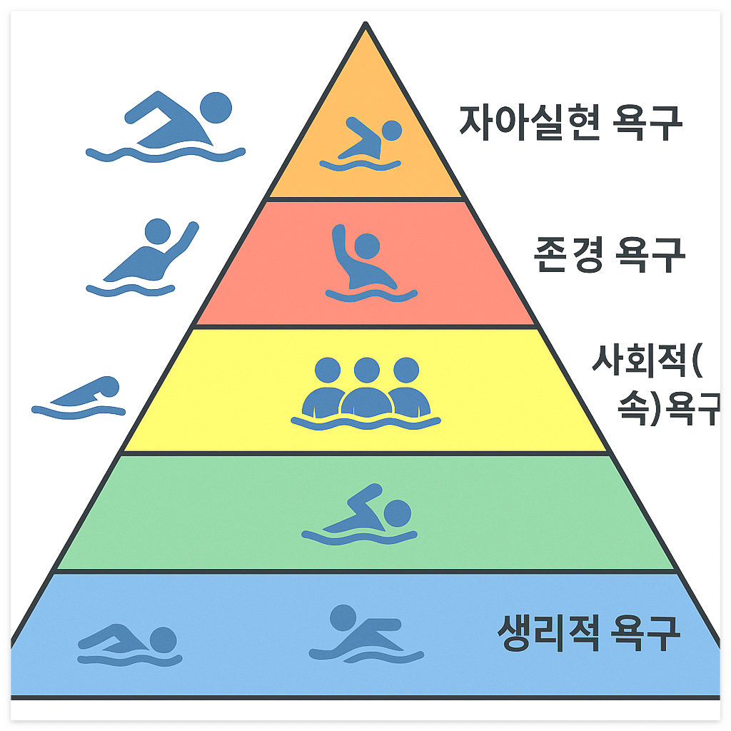 수영과 매슬로우 5단계의 상관성을 표현한 피라미드