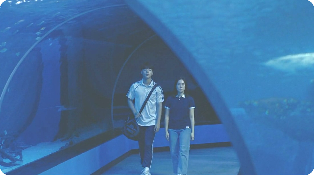 그렇게 석영과 재회를 한 우주는 또 한번 석영에게 중요한 사실을 털어놓습니다. 자신의 발갈퀴가 사라지고 있어 예전만큼 기록이 나오지 않아 선수 생활이 위험하게 되었다고 말이죠. 석영은 실망을 하지만 우주가 마음을 고쳐 먹고 선수 생활에 매진할 수 있도록 도움이 될 수 있도록 노력합니다. 그렇게 서로에 대한 애착이 깊어지고 있을 때, 석영의 남사친이 우주의 부진한 수영 기록이 석영과의 연애 때문에 그런 거 같다며 안해도 될 말을 하고, 당황한 석영은 남사친에게 우주의 비밀을 발설하게 됩니다. 그 후에 벌어지는 일들은 관객의 입장에서 마음이 쓰려옵니다. 이러한 전개를 통해 작품이 시사하고자 하는 바가 무엇인지 파악하는 것은 관객들의 몫이며 정답은 없습니다. 다만, 저런 상황이라면 우리는 어떻게 대처를 했어야 할까... 잘 이겨낼 수 있을까.... 등등 극 중 인물들의 복잡한 심경이 그대로 전해집니다. 그게 이 영화의 특별한 점 같습니다.